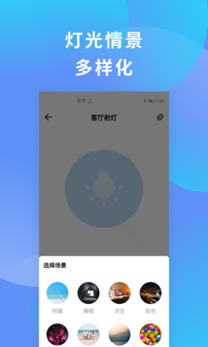 3、情景模式:预置情景模式,帮助用户轻松实现不同的情境下灯的调节控制。