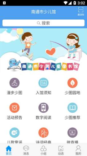 南通市少儿馆app是一款由南通市图书馆开发的图书馆服务软件,软件内拥有很多强大功能,用户可以通过本软件线上借书还书,还有很多图书馆活动资讯通知,帮助用户查询书籍借阅情况信息。