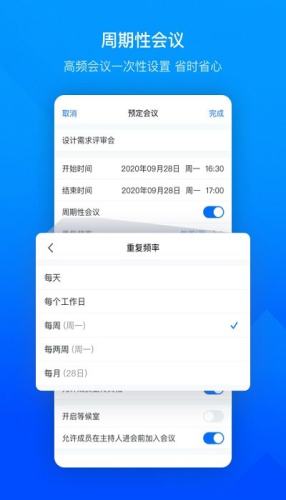 - 界面清爽简洁,一键预约、发起、加入会议;