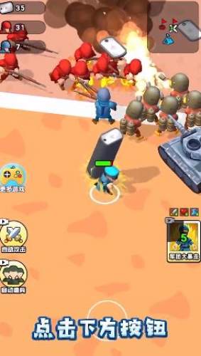 游戏中造兵并操纵小兵与敌人作战,可在商店里不断解锁新的小兵。