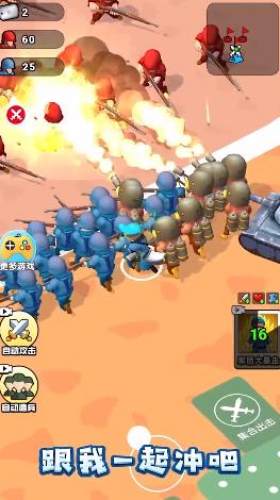 游戏玩法比较简单,基本都是以1v1形式进行的,玩家在游戏中将按照自己的想法,去派出士兵进攻对方,士兵种类有很多种,玩家需要注意搭配,使用不同的类型的兵种克制敌人,随着关卡的深入解锁更多更强大的兵种,胜利之后的还可以对兵种进行升级,非常有趣。
