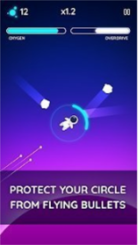 2、简单的点击屏幕就能够控制游戏节奏,盾牌就可以保护你的宇航员的圈子。
