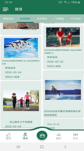 1、了解各类生活中的锻炼方式:韵律操、体操、亲子瑜伽等体操,快走、慢跑、骑行等跋涉,扇子舞、印度舞、交谊舞等舞蹈,擒拿、跆拳道、太极拳等武术,在这里你都能一一了解;