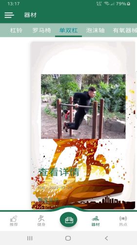 3、熟悉专业的健身器材使用:哑铃、弹力绳、杠铃、罗马椅、单双杠,这里都有详细的使用方式和技巧,让您不走弯路,合理健身;