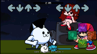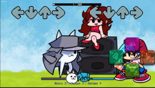 周五夜放克battle cats demo模组加入了可爱的猫咪角色,玩家在游戏中依旧是bf的身份,想要和女朋友成功约会就必须打败这只猫咪,它将为你带来全新的音乐,开始挑战后会采用回合制模式,轮到你时要精准点击每一个上浮的音符哦!