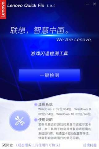 游戏闪退检测工具下载,联想用户游戏闪退检测软件,解决游戏玩家遇到的游戏闪退问题,一键检测,快速获取检测结果,更好修复游戏运行问题。