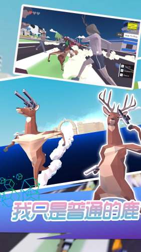 一款玩法刺激有趣的特色休闲沙盒模拟游戏,玩家在游戏中可以享受超多好玩刺激的精彩特色内容,超大游戏兔兔供你探索,游戏过程十分减压!作由一只鹿为主角,带您闯进游戏世界。这只鹿能随意伸缩脖子,又可以利用鹿角当作武器使用。在这游戏世界,跟城里的其他动物一起享受美好时光,彻底摧毁小镇里的一切,释放普通的鹿的真正力量吧。