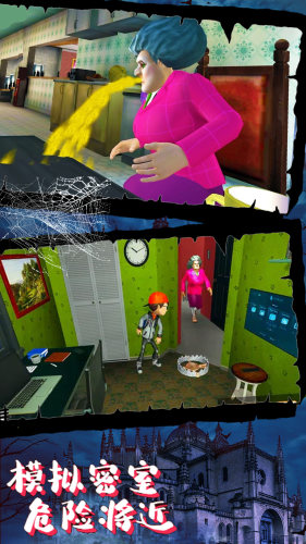 恐怖题材的冒险解谜闯关类游戏玩家要寻找道路,游戏中玩家需要做的就是操作自己的角色在恐怖邻居奶奶的家里游戏,给玩家最刺激的体验,快速的找到线索逃脱,千万小心。