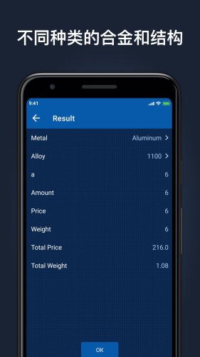 金属计算器手机软件可以很容易地估计金属管、通道和梁的各种形状和角度近似的重量和长度,是一款工程领域计算工具,在金属,材料,重机械领域能够发挥出用处,金属计算器智能测量仪app可以快速计算相关材料的重量,长度计算等内容,可以统计数据图表,快速获取需要的数据信息。
