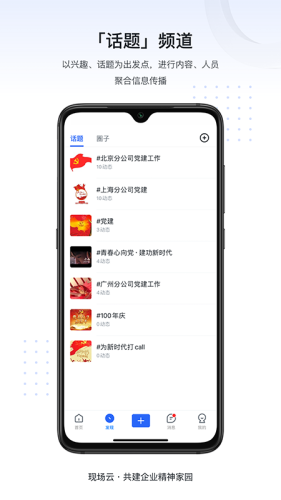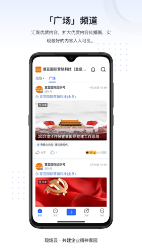 现场云企业版是一个为企业提供数字化转型、文化先行以及内容供给侧改革等服务的app,提供丰富的层级设计、多样的交互形式以及不同的身份角色来带动内部文化和思想的传播,促进企业文化建设。