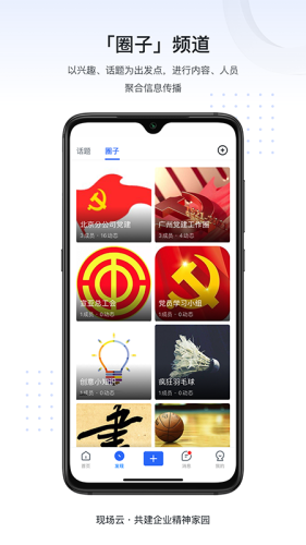【“圈子、话题”频道】以兴趣、话题为出发点,进行内容、人员聚合信息传播。
