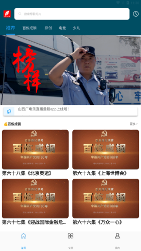 山西广电乐直播APP由山西广电新媒体有限公司主办,APP主长正确引导网络视听导向和传播网络视听正能量。APP开设百炼成钢(专题)、视听(含电影、电视剧、动画片、少儿、电竞)、红色光影等多个频道,也具备视频搜索的功能,用户可以通过搜索关键词找到自己需要的视频内容,我们将努力做好优质内容,逐步形成多样化,内容覆盖广泛的视频APP。