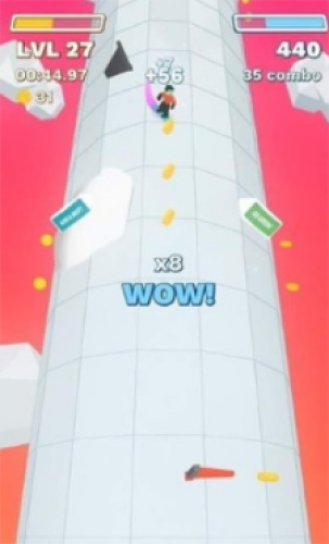 1、一款休闲类型的动作冒险游戏,有点像是竖版的滑雪大冒险,