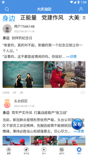 微视和美图板块,反映油田传统、油田生产、员工生活的短视频和新闻图片应有尽有,有热点、有看点;