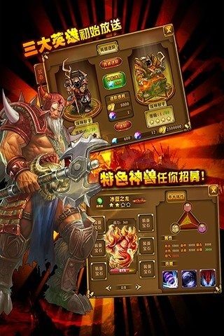 1、上百种英雄和神兽,百变的战斗阵容组合,独特的天赋专精培养,让你随意定制专属战队。