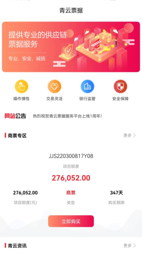 青云票据app,专业、安全的供应链票据服务平台,关注票据交易市场动态,获取最新新闻资讯,共享有价值信息,让供应链票据交易更放心。