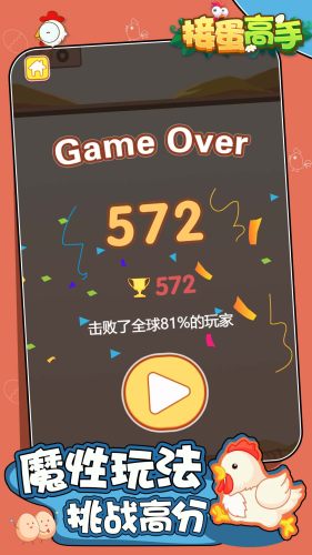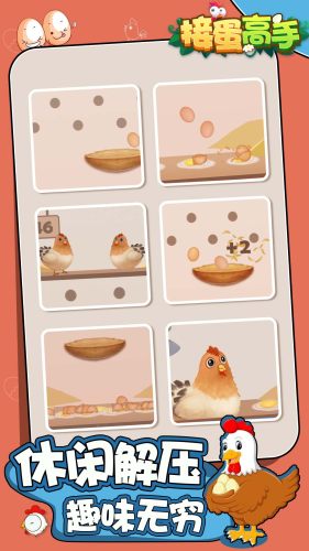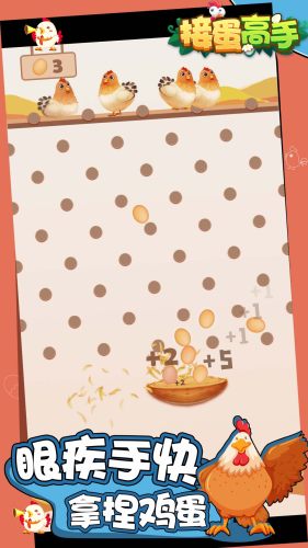 接蛋高手,魔性解压小游戏,游戏中玩家将快速反应,接住一个个鸡蛋,同时注意空中的障碍物,接住的鸡蛋越多你得分越多,就能轻松通关了。