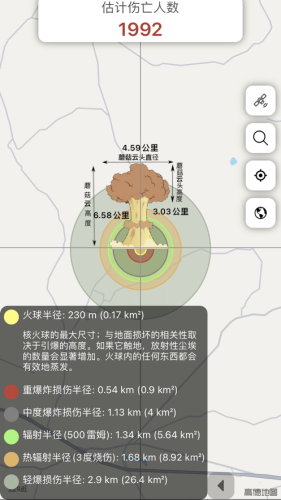 5、模拟了很真实很有趣的核弹爆炸的效果内容,可以自由的在不同位置投掷核弹;