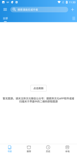 下载安装异次元漫画App后,还需要用户导出图源方可获得海量漫画资源,或者进入推荐频道获取漫画,再或者导入本地漫画也可以,本应用是款漫画阅读器,可以导入任意的图源哦!