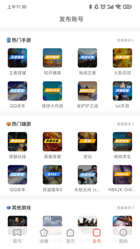 4、全品类的游戏覆盖--提供当下热门游戏(王者、lol、和平精英等)、火爆新游的账号出租。