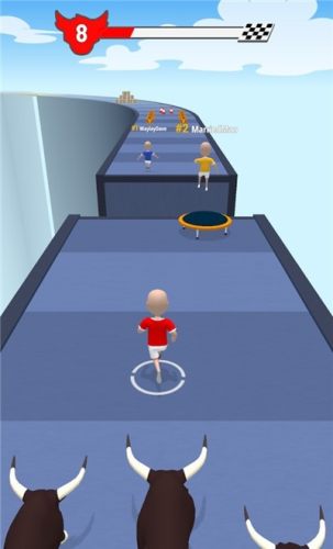 公牛别过来一款有趣的休闲闯关游戏,玩家将与其他竞争者比赛,最后的人将被公牛淘汰,游戏玩法非常刺激和快乐,速度会下降,所以会被公牛追上,路上要避开障碍物,因为设置障碍物时,公牛追上后会把你带到山顶,那还等什么,感兴趣的下载去体验吧。