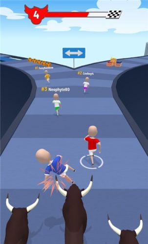 公牛别过来是一款非常好玩的跑酷竞速游戏,在游戏中你不但要和其他玩家一同竞速,还需要躲避后面公牛的攻击,非常有意思。在游戏中玩家将扮演一位被公牛追击的小伙子,你需要有厉害的反应速度才能逃脱,你做得到吗?快来试试吧。