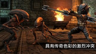 《异形大战铁血战士:进化》采用第三人称视觉,玩家通过虚拟摇杆控制移动,虚拟摇杆并没有固定在某一个位置,玩家不用担心万一手指离开了摇杆的指定位置会导致主角被围殴。右边A键攻击,B键负责格挡/冲刺,玩家可以通过指定连续技捕杀敌人,控制面板也会提供连续技说明供玩家查阅。当敌人头顶上出现骷髅头,此时直接点击头上符号或者点击右下方的标志均可以进入QTE,按照手势的方向即可进行分尸。在游戏的过程中玩家无需寻找药瓶,无论是铁血战士还是异形,都有自动回血功能,发动绝招分尸敌人后更加会大幅度回血。