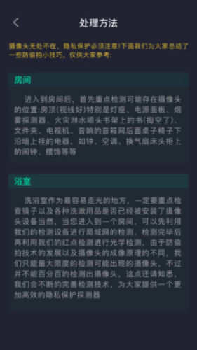 软件还提供了防偷拍技巧,培养用户的安全意识,快速摆脱危险境地。