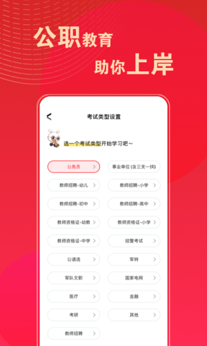 涵盖了公务员、事业单位、教师招聘、教师资格证、特岗教师、三支一扶、招警、公遴选、军转、军队文职、国家电网、医疗、金融、考研等各类职业教育考试,