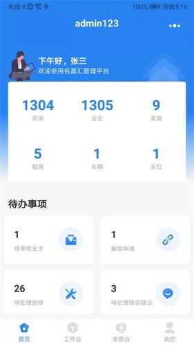 可以管理待办事项等内容,同时还可以实现线上缴费,押金管理;
