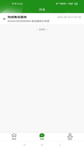 app消息页面:针对售后流程会有相关指定的站内信消息进行通知用户,用户可了解相关售后单情况;