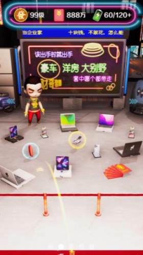 模拟真实地毯儿套圈的小游戏。游戏里玩家们可以利用手中的圈圈来套远处的物品,只要玩家们可以套上就可以获得相应的收益,各种别墅,豪车,珠宝等你套取。