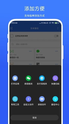 实用安卓捷径app,一款功能齐全的安卓捷径设置软件,轻松自定义动作,设置捷径,打开悬浮球,随时随地快速操作手机,为用户带来更便捷的捷径设置服务。