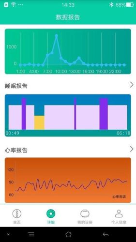 保存每天运动、睡眠、心率数据,分别绘制日曲线、周曲线、月曲线供使用者参考;