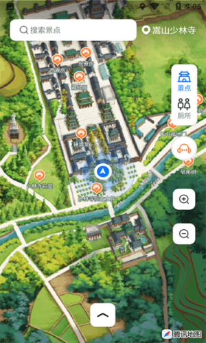 在地图上为用户显示出少林寺每一个景点的位置,便于用户查看;