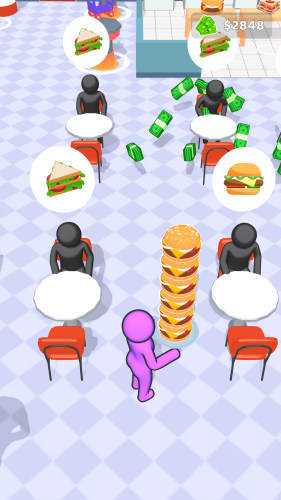 解锁新的餐厅和新的食物、雇佣服务员来增加工作效率;