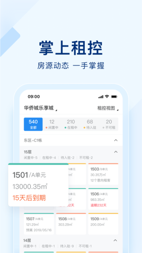 移动端与PC端实时联动,覆盖掌上收缴、掌上租控、移动跟客、盘点巡检、待办提醒等多个场景,灵活轻便,简约高效。