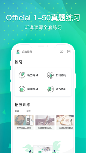 5、提供用户进行拓展练习,选择听力或者阅读的拓展练习,重点练习;