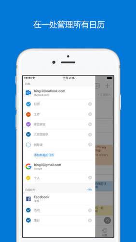 无需来回切换电子邮件和日历应用。Outlook 内置了日历,可向您发出约会提醒通知。