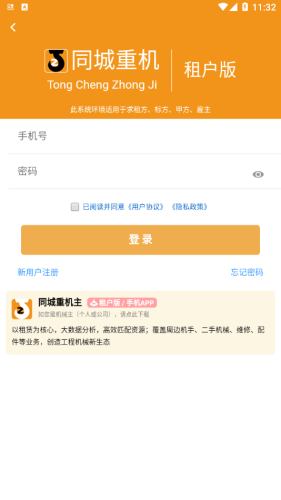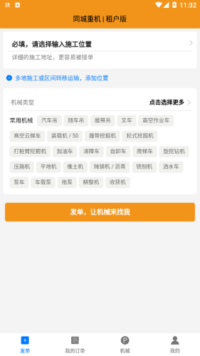 “同城重机”是机械租赁平台承租方(求租方、甲方、标方、雇主)使用的一套系统,