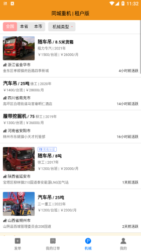 配合“同城重机主(机械方)”搭建一个即时安全可信的机械出租承租平台。