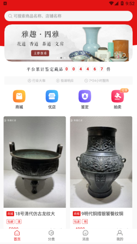 实现了文玩及艺术品交易行业线上化。经过多年的线下实体经验,雅趣匠意行业支持消费者权益保障的多项举措,打造消费者维权的行业标准服务价值体系,应用文玩艺术品线上交易行业全新服务标准。