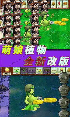 卡通的塔防战斗,各种的萌娘植物可以解锁。