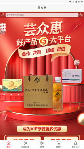 芸众惠app,一款拥有大量健康产品的购物商城,各种促销、优惠活动尽在其中,参与活动获取积分,享受更多优惠福利,积分兑换优质好物,享受更便捷的健康产品购买体验。