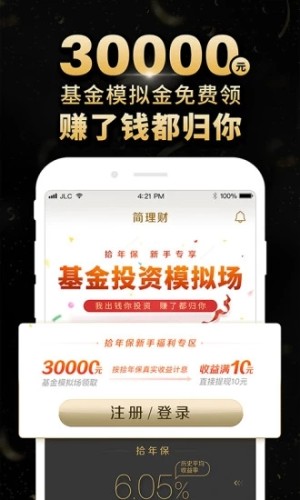 简理财,是一款方便简单的手机理财App,投资者可以随时提取投资本金、收益高,活期存储可达8%,是余额宝的2倍;采用了顶尖的安全保证技术、中国金融认证中心(CFCA)权威认证,多重保障确保投资者资金安全。
