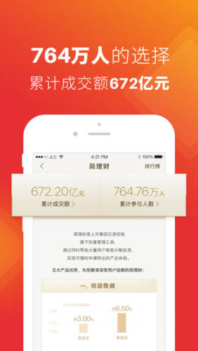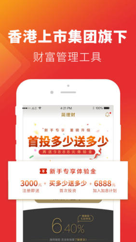 简理财App是一款专为广大中小投资者打造的掌上理财神器,灵活存取、随时赎回,确保资金周转方便;采用顶尖的技术,拥有银行级安全保障,投资者可以放心投资;收益高、门槛低,年化收益可达8%以上,回报率更高。