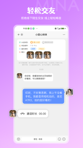 咪呐APP是一个手机社交平台,集社交交友,实时音视频,互动等功能于一身。通过咪呐圈与好友分享生活点滴,兴趣爱好;从此你的每时每刻都可轻松与人分享。