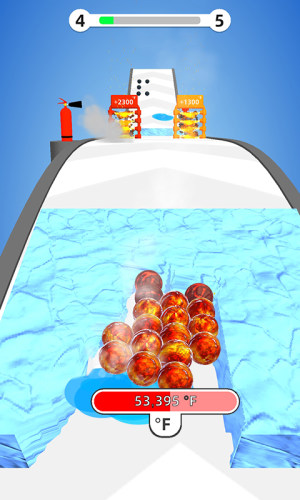 休闲游戏,通过收集球球壮大队伍,前方有随机出现的障碍!需要巧妙避开并且加热球球通过冰块。小心路上的灭火器!!