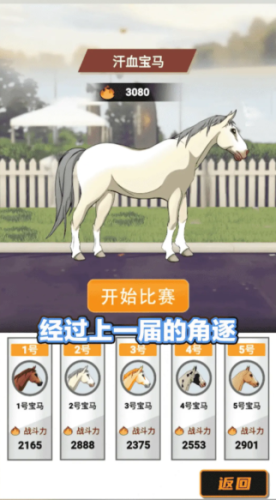 2、将自己培养的属性最高的马匹和其它玩家的马匹来进行比赛,获得一定的金币奖励。