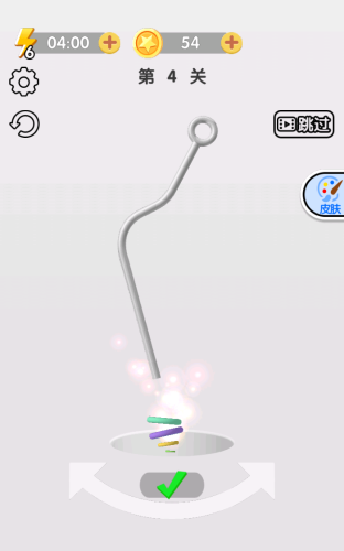 3、在游戏中,千奇百怪的回形针阻挠着玩家让甜甜圈落到洞中,这就需要玩家思维发散,耐心的调整角度。